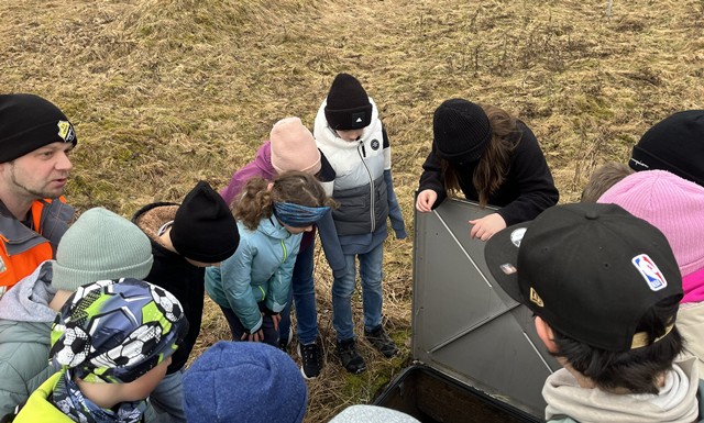 Ein weiterer Höhepunkt des Ausflugs war die Besichtigung des alten Wasserhäuschens, das vor einigen Jahren stillgelegt wurde. Die Kinder konnten das Gebäude betreten und sich ein Bild davon machen, wie früher die Wasserversorgung im Ort organisiert war. Der historische Charme des Hauses und die alten Maschinen, die dort früher genutzt wurden, begeisterten die Schüler. Es wurde erklärt, wie die Versorgung vor der Modernisierung funktionierte und warum heutzutage andere, effizientere Techniken verwendet werden.