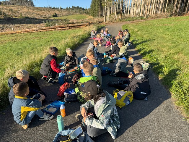 Grundschule Tettau ein fröhlicher und aktiver Wandertag statt. Bei