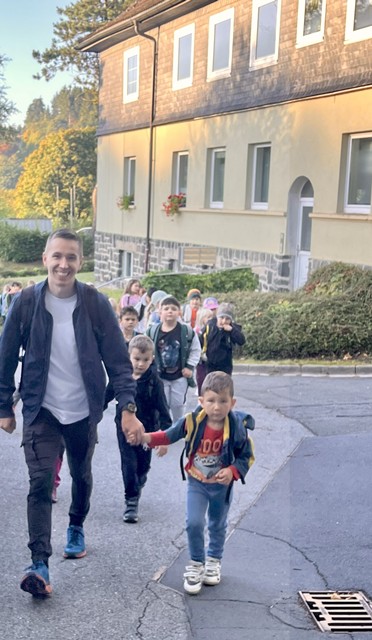 nahegelegenen Wald. Die Stimmung war fröhlich, die Kinder freuten