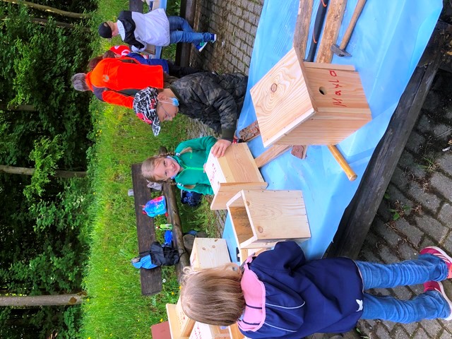 Am nächsten Tag befestigten die Schüler mit ihren Helfern die Kästen
