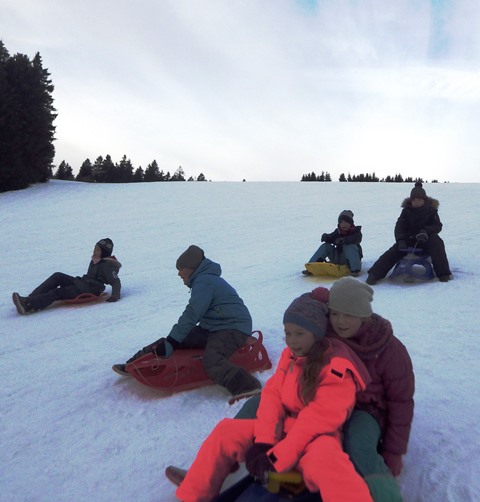 nach ausgiebigem Rodelvergnügen anschließend noch in der Turnhalle