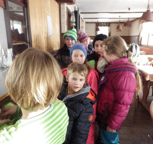 alle Kinder froh, dass Herr Kaiser für uns die Skihütte geöffnet hat