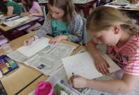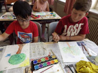 Graßmuck erklärte den Kindern die Aquarelltechnik, die mit viel