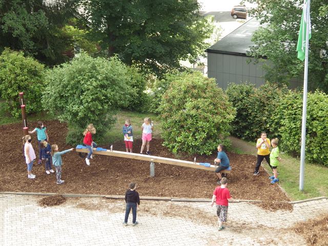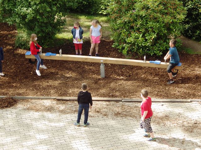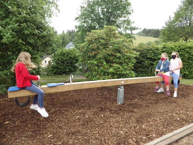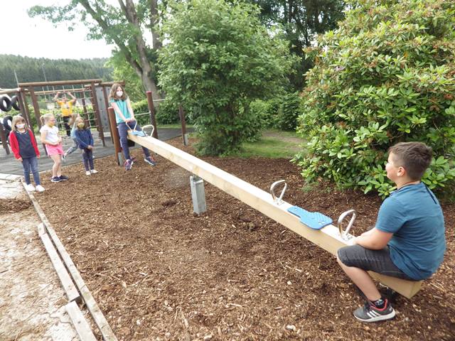 auch die Wippe im Schulhof fest montiert. Das Spielgerät wurde von