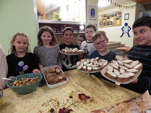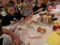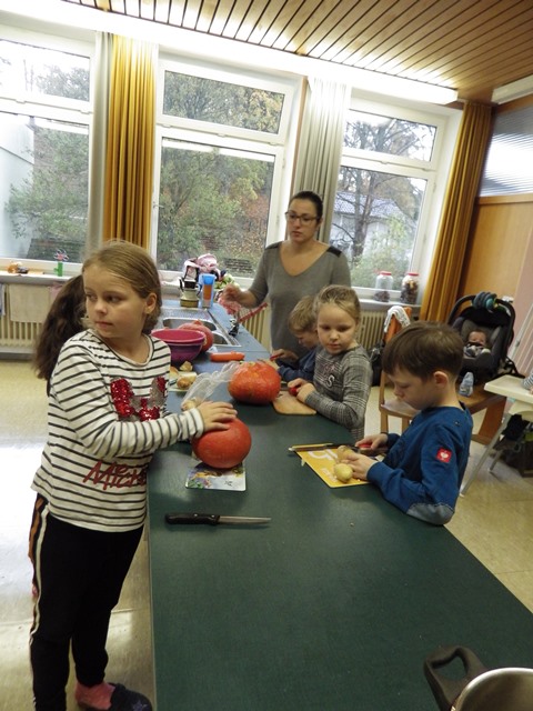 uns, Kürbisse und Äpfel zu verarbeiten.