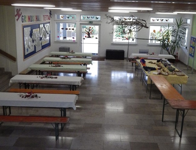 Pausenhalle hatten mehrere Kinder die Tische wunderschön herbstlich