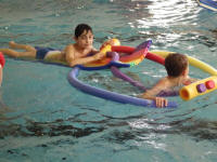 und Schwimmnudeln abenteuerliche Gebilde oder versuchten, über eine