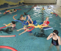 boten einige Helfer der örtlichen DLRG ein Schwimmtraining mit