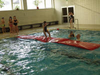 konnten. Mit einer großen Matte durften sie Floß fahren und auf der