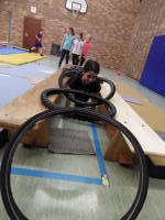 auf. Begeistert waren die Kids, als sie an Tauen schwingen oder sich