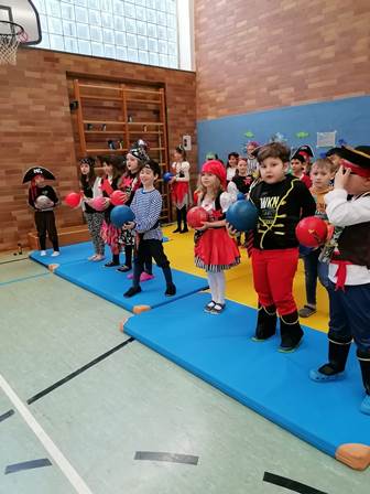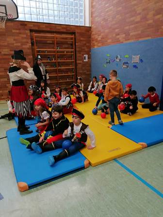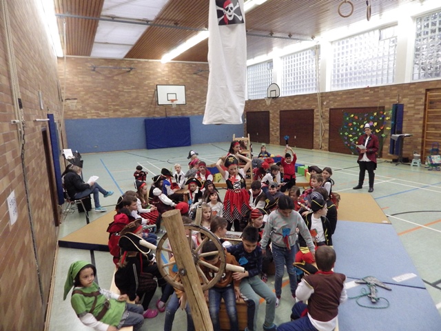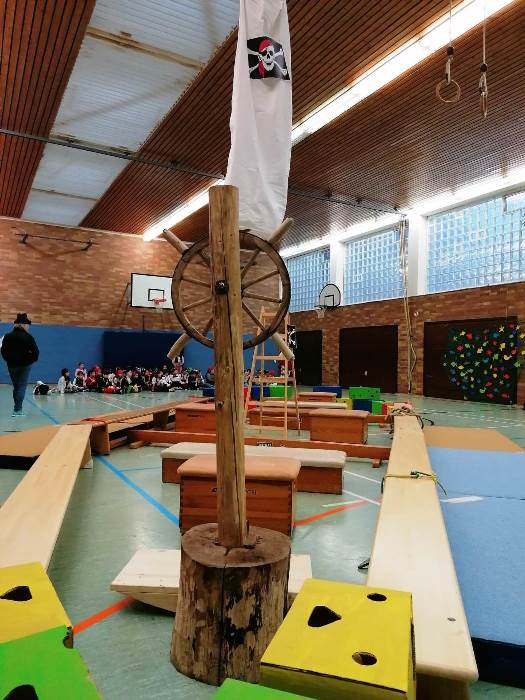 In der Schulturnhalle waren ein großes Piratenschiff und eine Insel
