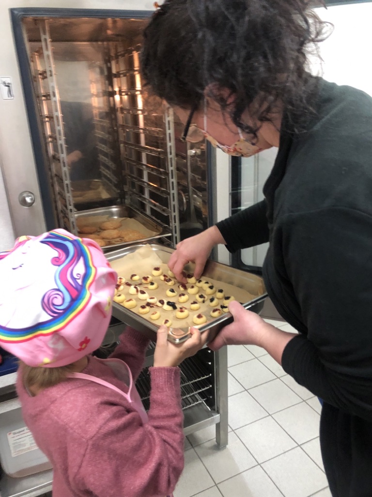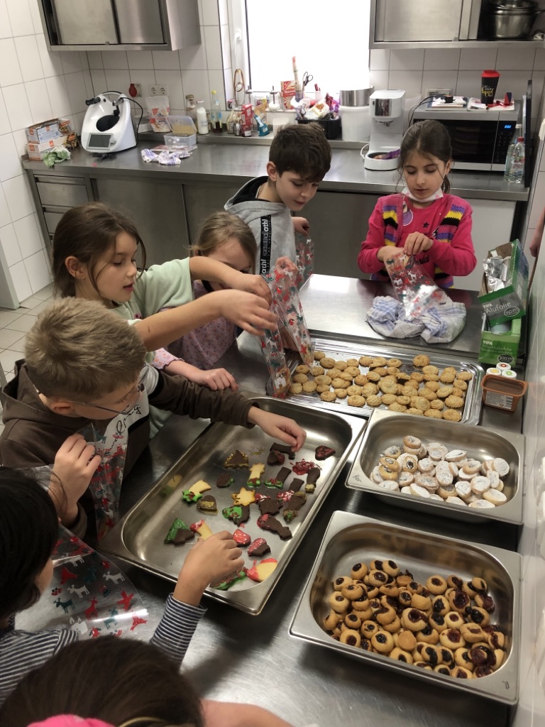den Betreibern des Cafés Plätzchen zu backen.