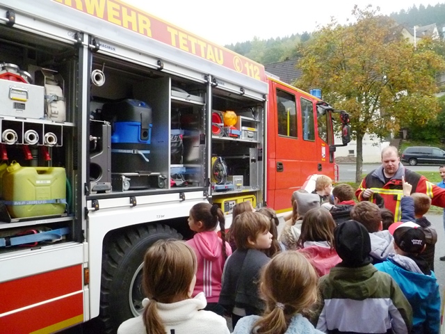 Ein Besuch im Feuerwehrhaus bietet für Kinder immer wieder ein ganz besonderes Erlebnis, bei dem sie hautnah und unmittelbar erleben können, was Feuerwehr heute bedeutet. Am 10. Oktober konnten die Schüler der Grundschule Tettau mit eigenen Augen sehen, was die Feuerwehr in ihrem Ort leistet.