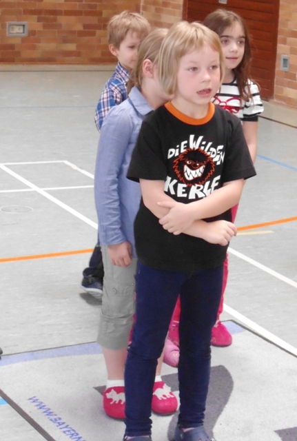 wird abgespielt, jeweils ein Kind jeder Gruppe (das vorderste