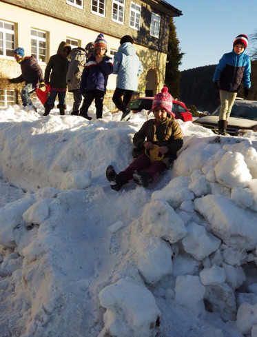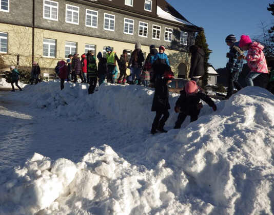 Auf dem Pausenhof schoben Mitarbeiter des Bauhofs den Schnee zu