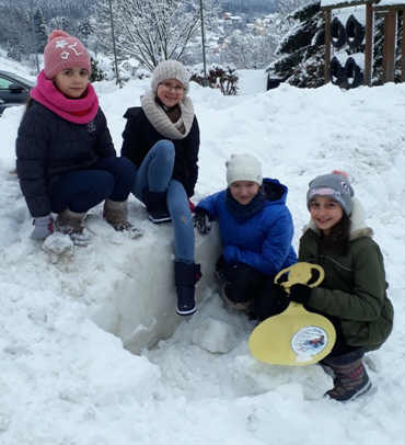 es in den Pausen, gemeinsam Schneemauern zu bauen oder im Schnee zu