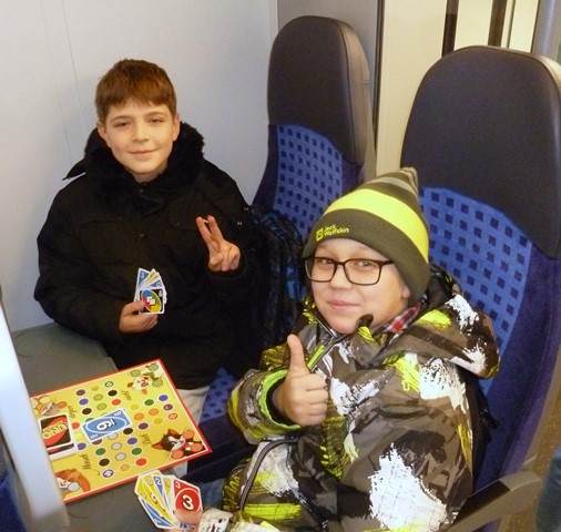 der hohen Buskosten den Zug mit ihrer Klassenlehrerin wählte. „Es