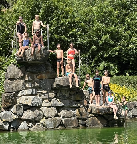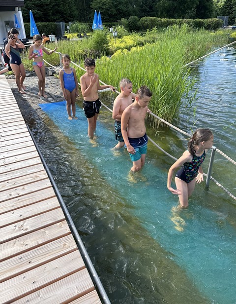 Am Mittwoch, den 25. Juni, waren die Klassen 3 und 4 bei hochsommerlichen Temperaturen zu Besuch im Naturerlebnisbad Rothenkirchen. In der wunderschönen Anlage konnten die Kinder den Wasserspielplatz nutzen, sich im Schatten unter den Bäumen aufhalten und natürlich eine erfrischende Abkühlung im Wasserbecken genießen.
