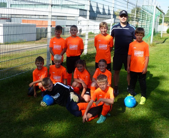 Auch die Grundschule Tettau war wieder mit einer Mannschaft vertreten. Unter der Leitung ihres Trainers Michael Ruß und der Unterstützung von Lehrerin Anke Murkowitz gaben Anton R., Emma, Maria, Oskar, Paul, Anton B., Tim G. und Charly auf dem Feld ihr Bestes.