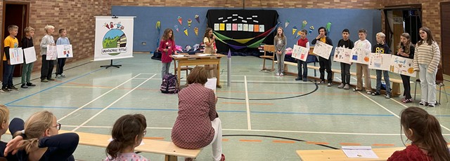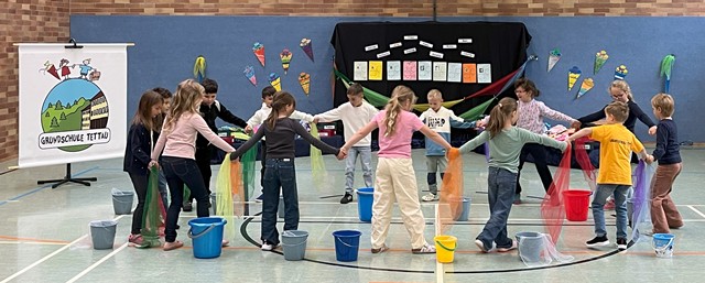 In der Turnhalle warteten dann die Jahrgangsstufen 3 und 4 mit ihren