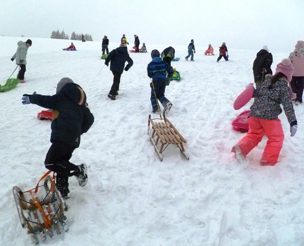 Parallel dazu hatten die anderen Kinder großen Spaß am Rodelhang, wo
